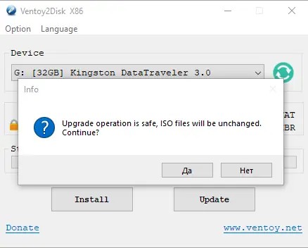 Ventoy не изменяет содержимое раздела с образами при обновлении, что позволяет сохранять все файлы без риска их потери.