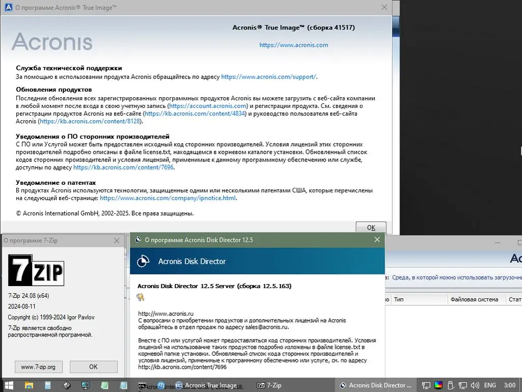 - Интеграция десятков утилит для резервного копирования, восстановления данных и диагностики оборудования