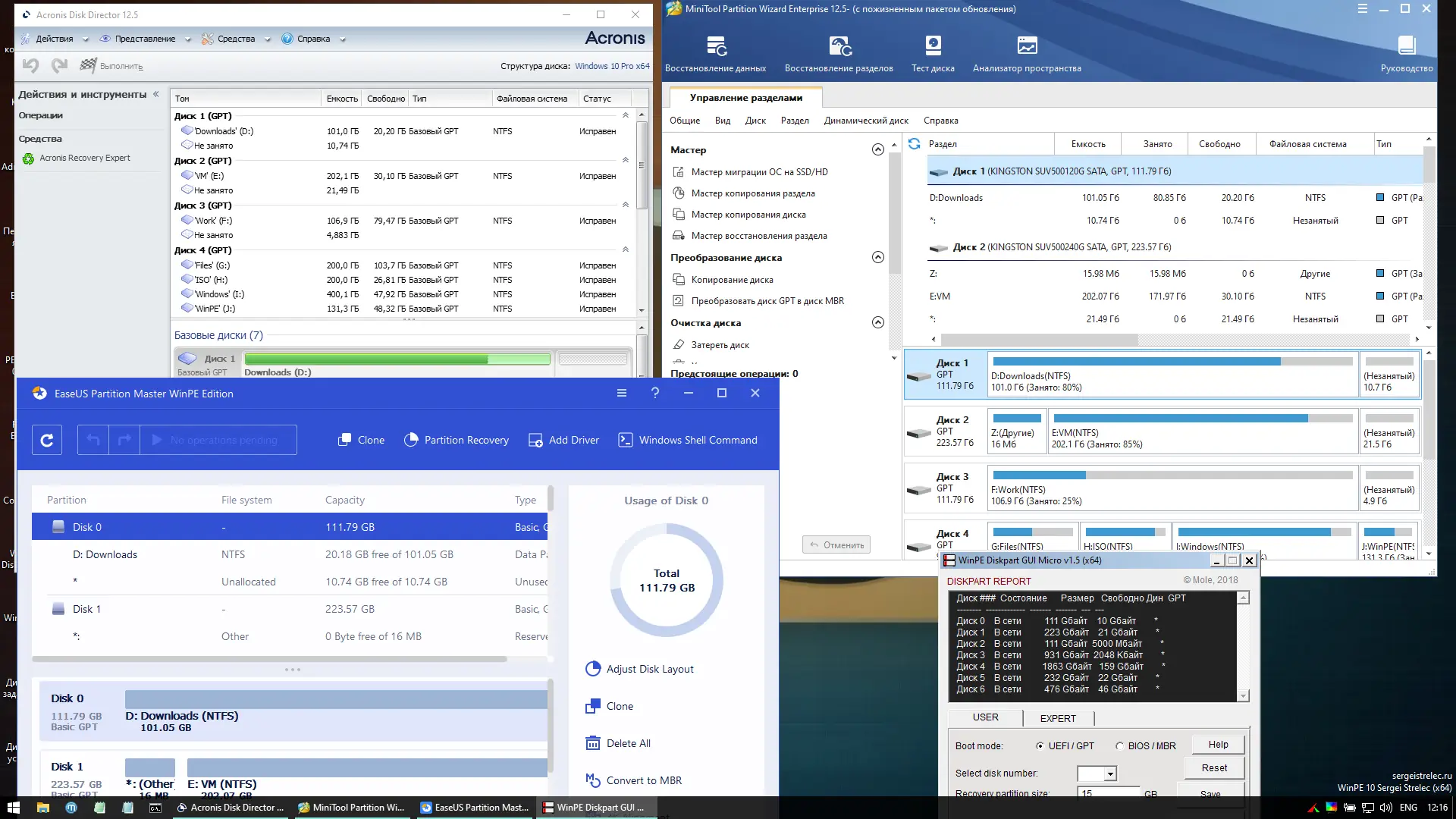 - Поддержка операционных систем Windows 11 и 10 в среде WinPE