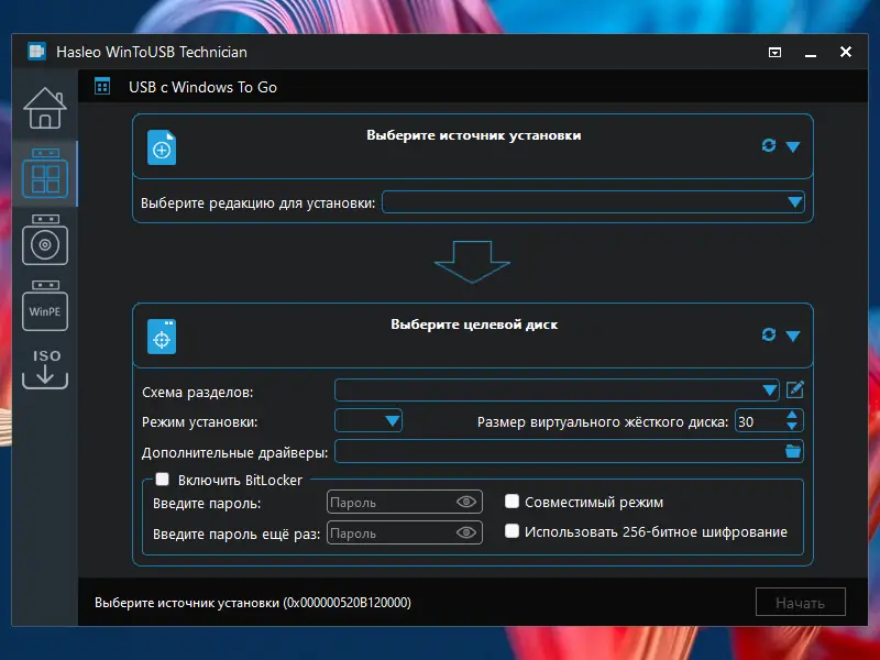 WinToUSB предоставляет возможность установить полноценную операционную систему на съёмный носитель, обеспечивая мобильность и автономность рабочего окружения. Пользователь может выбрать любой подходящий раздел на USB-устройстве или диске Thunderbolt для размещения системы. Программа совместима с современными интерфейсами, включая USB 2.0 и USB 3.0, а также поддерживает диски с нестандартным размером сектора, что расширяет совместимость с различными типами оборудования.
