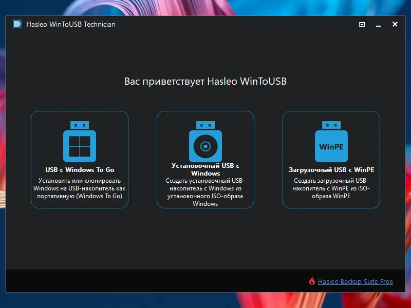 - Возможность клонирования текущей установки Windows на USB-накопитель для создания переносной копии.