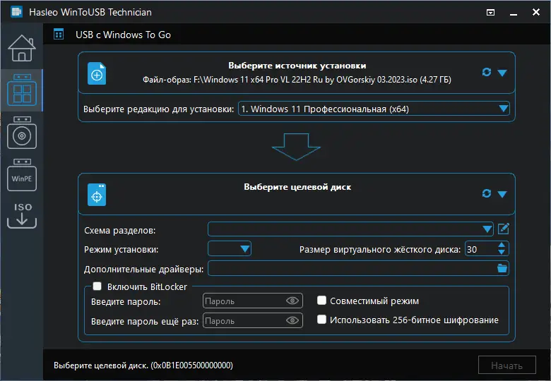 WinToUSB — это инструмент для создания портативной Windows на внешнем носителе, позволяющий запускать операционную систему с USB-диска, флешки или устройства Thunderbolt. Программа поддерживает установку Windows 11, 10, 8, 7 и серверных версий через образы ISO, WIM, ESD, SWM, VHD, VHDX или с физического диска. Процесс установки занимает несколько минут и требует всего три шага, что делает решение доступным даже для новичков.