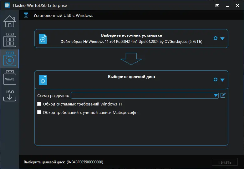 Работа с WinToUSB
