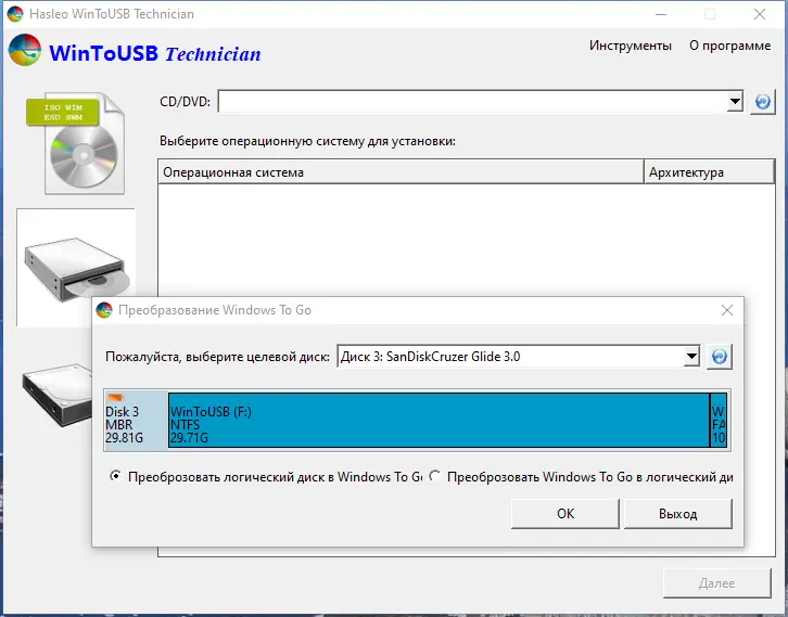 - Поддержка установки Windows To Go с ISO, WIM, VHD, VHDX и физических дисков.