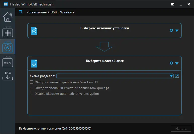 Использование программы начинается с выбора источника установки — это может быть образ ISO, физический диск или уже установленная система. Далее указывается целевой USB-носитель, на который будет произведена запись. Программа позволяет выбрать тип установки: чистая инсталляция или клонирование. После завершения настройки запускается процесс развёртывания, в ходе которого создается загрузочный раздел и копируются системные файлы. По окончании операции накопитель можно использовать для запуска Windows на другом компьютере. Поддержка UEFI и BIOS обеспечивает совместимость с широким спектром оборудования. При необходимости можно включить шифрование через BitLocker, что особенно актуально при использовании накопителя в публичных или корпоративных сетях.