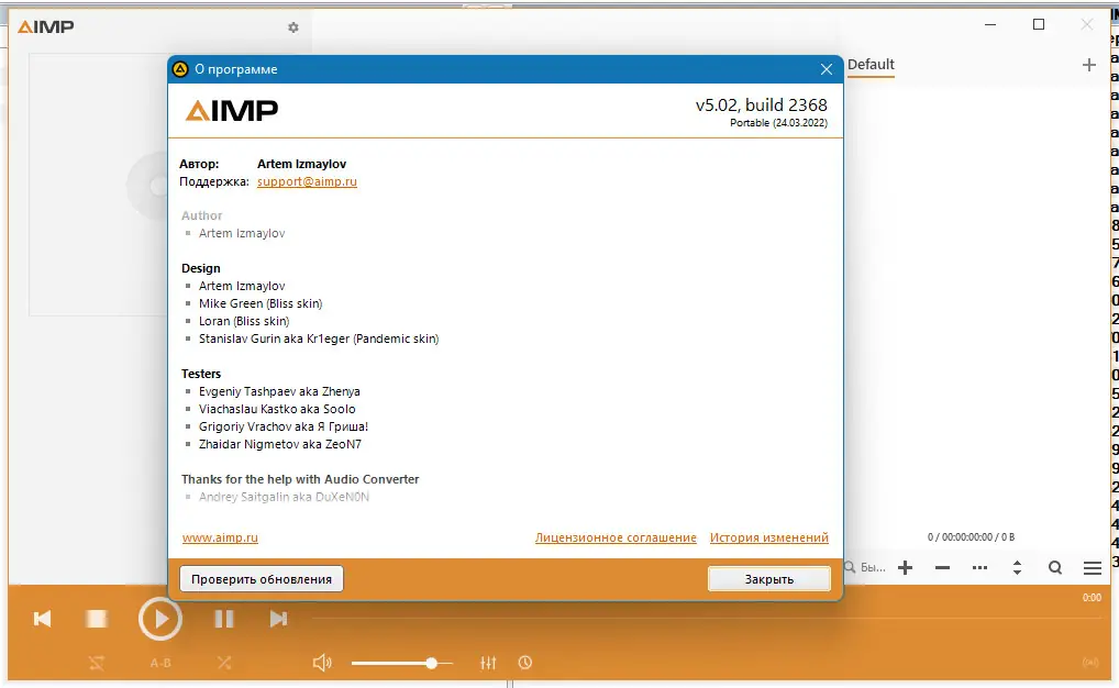 Работа с AIMP
