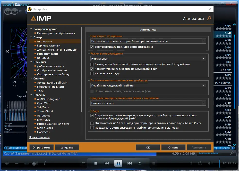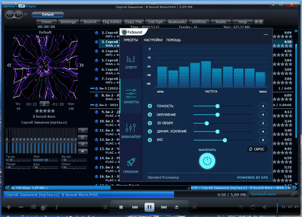 - Гибкая система настройки: интерфейс, горячие клавиши, скины, плейлисты и эффекты.