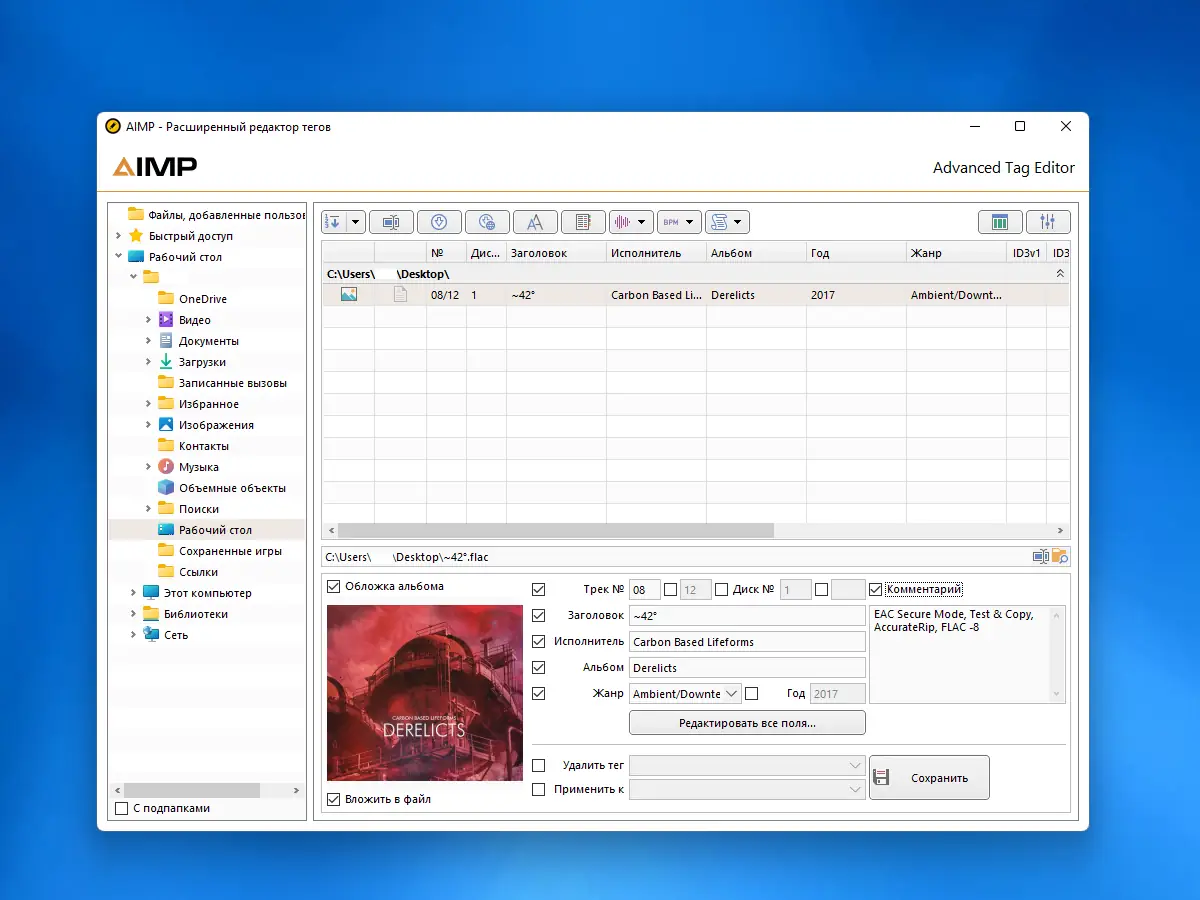 AIMP — это мощный аудиоплеер с широким набором встроенных инструментов для воспроизведения, конвертации, редактирования тегов и организации музыкальной коллекции. Поддерживает сотни форматов, включает эквалайзер, конвертер, редактор метаданных и интернет-радио, работая без дополнительных кодеков. Программа доступна бесплатно для Windows и подходит как новичкам, так и продвинутым пользователям.