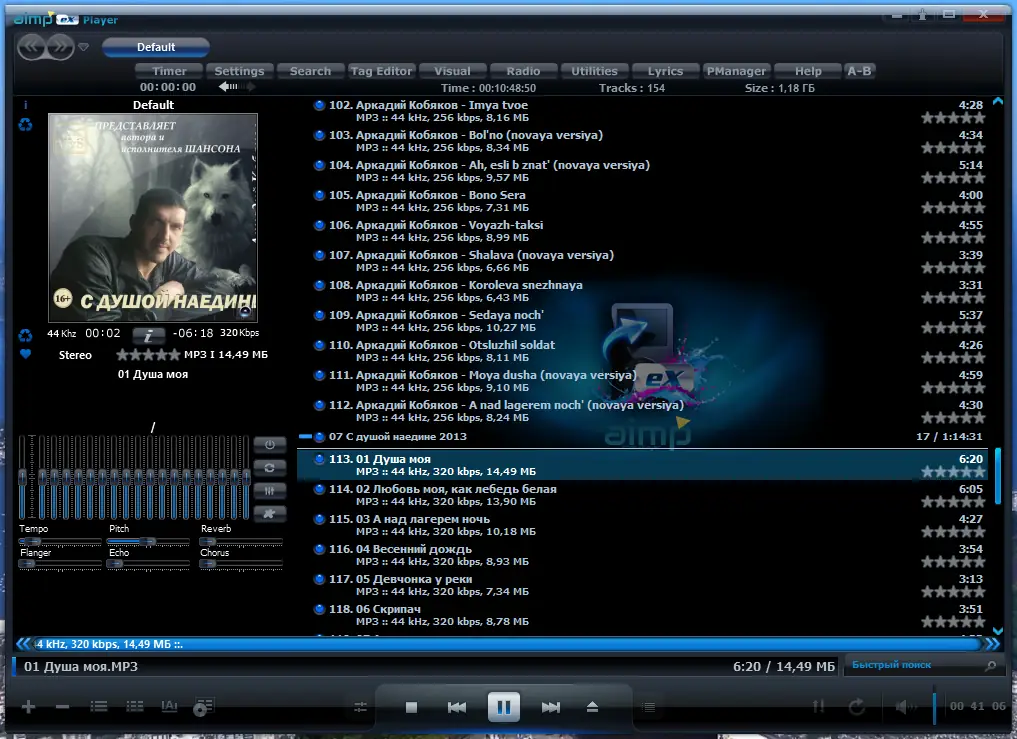 После запуска AIMP открывает доступ к основному окну воспроизведения, фонотеке, плейлистам и встроенным утилитам. Управление осуществляется через удобное меню, горячие клавиши и настраиваемые панели. Пользователь может импортировать музыку с дисков, переносить файлы с внешних накопителей, создавать смарт-плейлисты и сортировать композиции по жанрам, исполнителям или рейтингу. Редактор тегов позволяет массово изменять метаданные, а аудиоконвертер — перекодировать файлы в нужный формат с сохранением качества. Через встроенный приемник можно слушать радиостанции и записывать эфир в MP3, FLAC или других форматах без потерь.