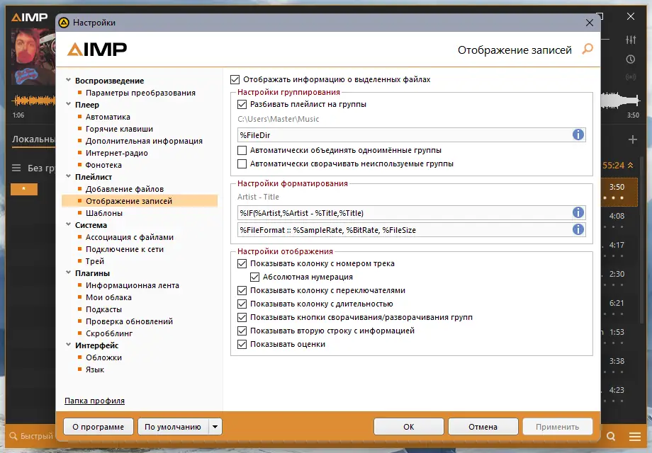 Работа с AIMP