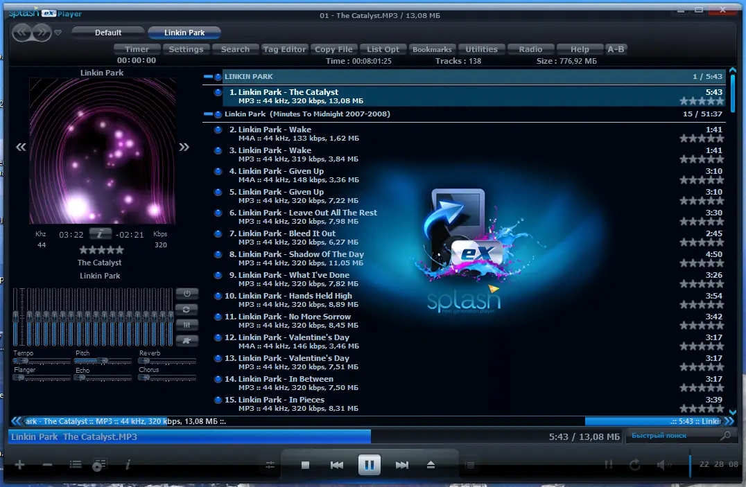 - Встроенные инструменты для конвертации, редактирования метаданных и захвата аудио с CD.