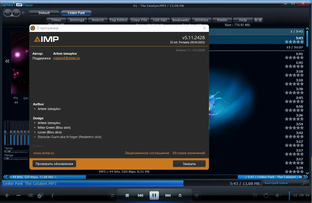 Программа доступна для установки на компьютеры под управлением Windows. Версия полностью совместима с системами семейства Windows 10 и поддерживает как 32-, так и 64-битные архитектуры. Установка занимает минимум времени, а наличие портативной версии позволяет запускать плеер с флешки без инсталляции. Чтобы начать использовать всё многообразие функций, достаточно скачать бесплатно и запустить установку. Программа не содержит вредоносного ПО и распространяется легально. Она подходит как для домашнего, так и для профессионального использования. Скачать 10 версию можно в портативном или установленном виде — выбор зависит от предпочтений пользователя. Плеер продолжает развиваться, регулярно получает обновления и исправления. Бесплатно получить программу можно на официальных площадках, где также представлены дополнительные скины и плагины. Скачать для windows просто — установочный файл работает на всех современных системах. Распространение осуществляется для windows 10 и более ранних версий, включая Windows 11. Это делает AIMP универсальным решением для всех пользователей.
