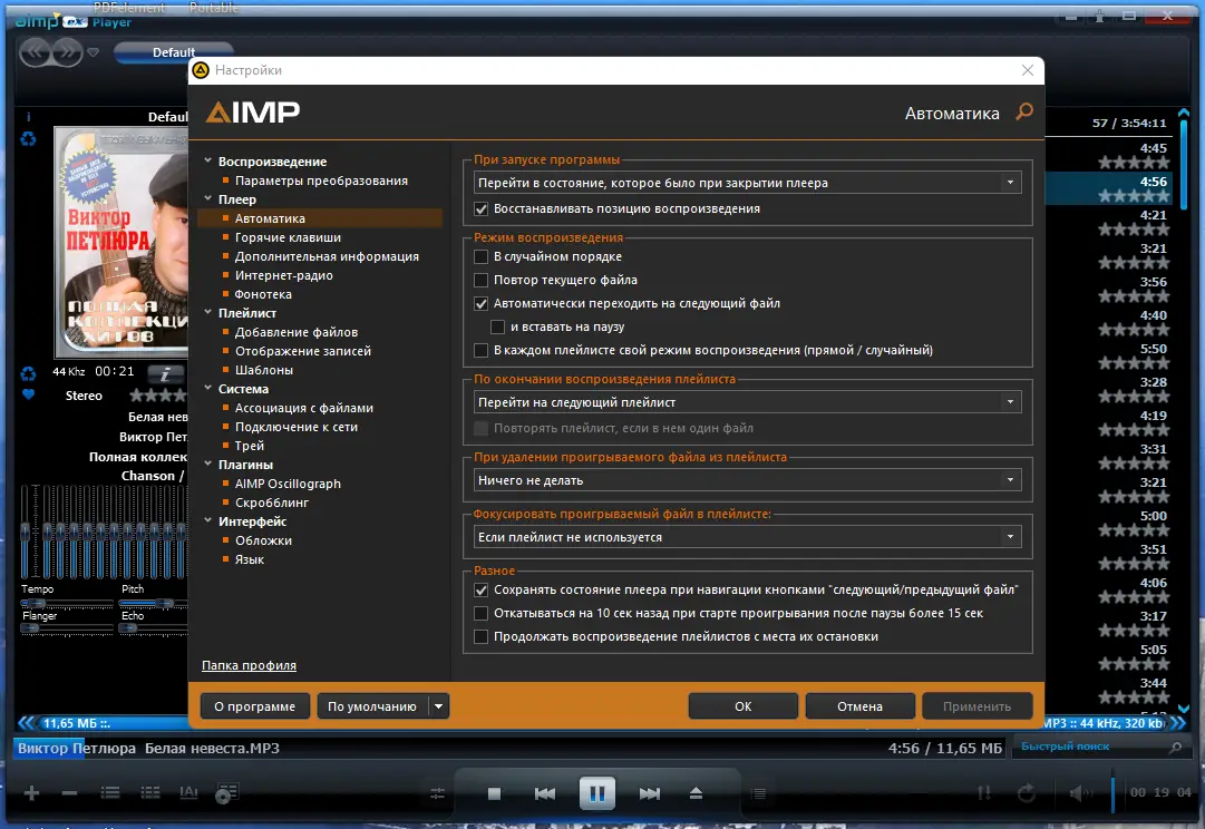 - Возможность записи интернет-радио в форматах MP3, FLAC, OGG и WMA с сохранением качества делает AIMP незаменимым инструментом для коллекционеров.
