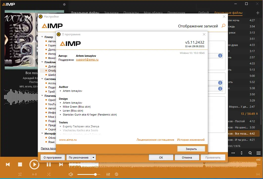 Работа с AIMP интуитивно понятна благодаря логичной структуре интерфейса. После запуска можно сразу добавлять файлы в плейлист, управлять воспроизведением или открывать фонотеку для систематизации коллекции. Пользователь может настроить отображение треков, использовать смарт-плейлисты, применить фильтры или группировку по исполнителю, альбому или жанру. Все действия легко выполняются как с помощью мыши, так и через горячие клавиши, которые можно настроить под себя. Встроенная система поиска позволяет быстро находить нужные композиции среди тысяч файлов. Кроме того, программа поддерживает работу с CUE-файлами, что удобно при работе с образами дисков.