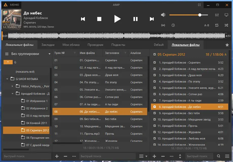Пользоваться AIMP просто и интуитивно понятно. После запуска можно сразу добавлять музыку в плейлист, перетаскивая файлы или открывая папки. Поддерживаются множественные списки воспроизведения, включая «умные» плейлисты, которые автоматически обновляются на основе заданных критериев. Редактирование тегов осуществляется группой, с возможностью переименования, сортировки и автонумерации файлов. Аудиоконвертер позволяет перекодировать треки в популярные форматы, включая FLAC, MP3 и OPUS, с выбором битрейта и профиля. Для любителей радио доступна функция записи станций без потери качества, а также поддержка CUE-файлов для точной навигации по альбомам.