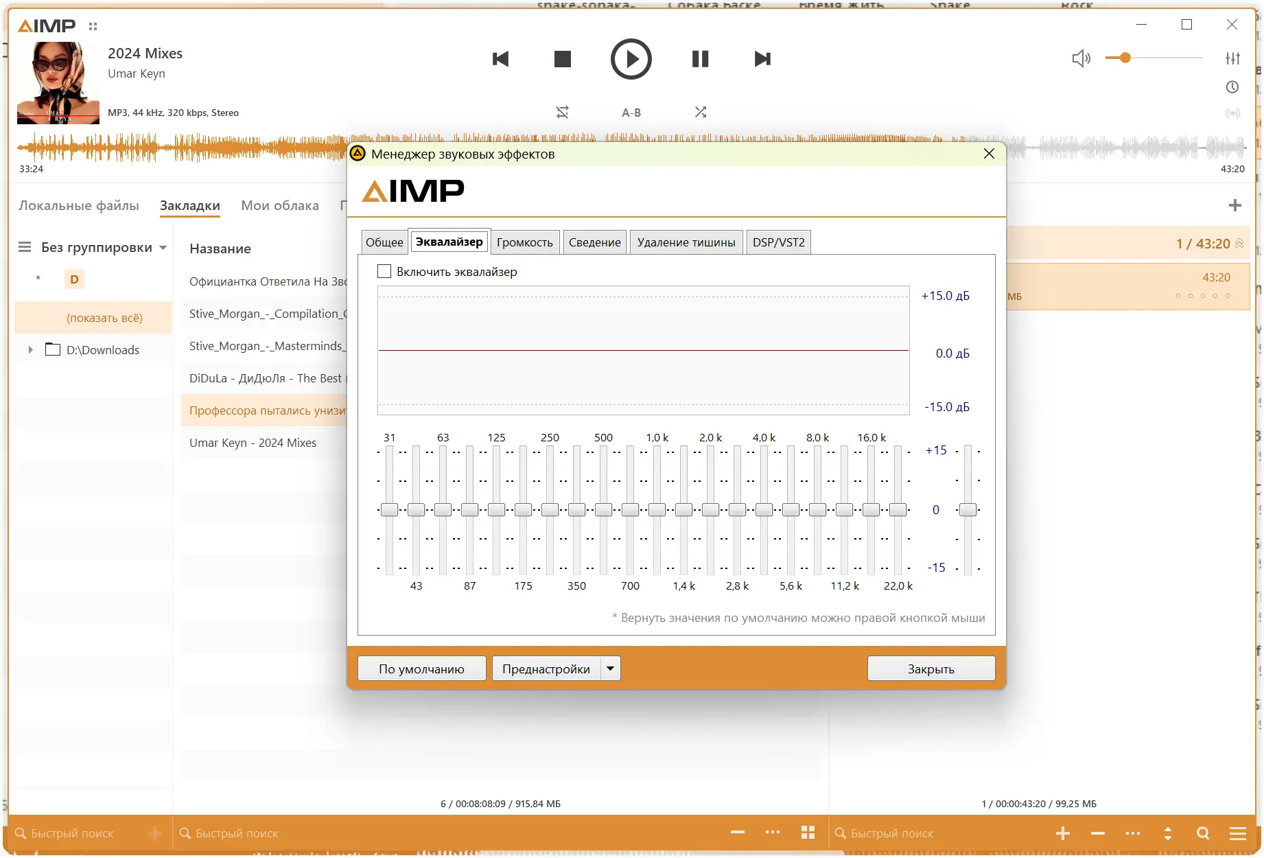 AIMP — это проверенный временем музыкальный плеер, который сочетает в себе производительность, функциональность и минимализм. Несмотря на небольшой размер установочного файла, программа поддерживает огромное количество аудиоформатов, включая редкие и высококачественные, такие как FLAC, DSD, Opus, WavPack и другие. Воспроизведение происходит с минимальной задержкой, а система практически не ощущает нагрузки от работы приложения. Это делает плеер идеальным решением как для повседневного прослушивания, так и для аудиофилов, ценящих чистый звук и стабильность.