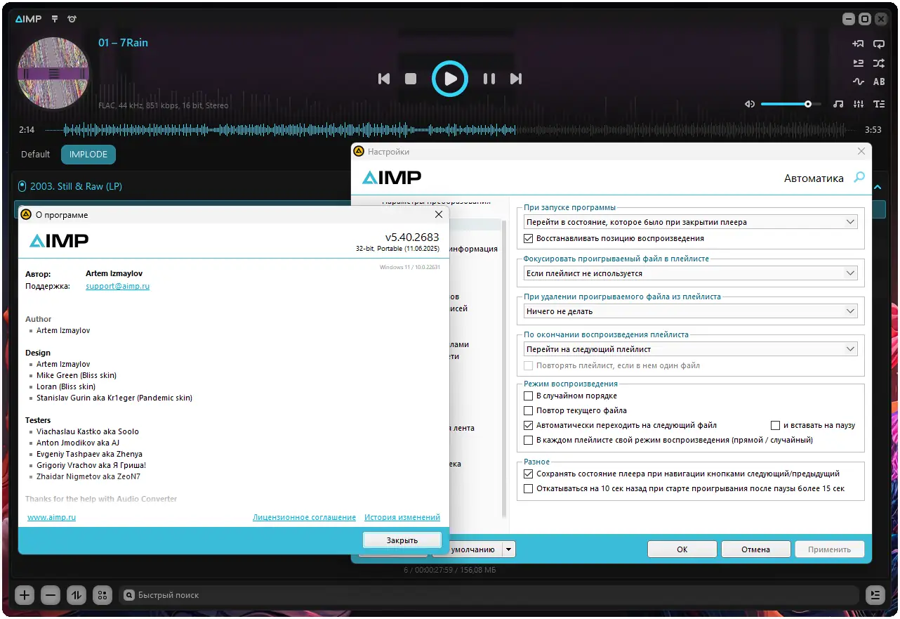 Проигрыватель доступен для установки на компьютеры под управлением Windows. Существуют как стандартные версии, так и расширенные сборки с дополнительными плагинами и настройками. Пользователи могут выбрать подходящий формат установки, включая портативную версию, и настроить процесс инсталляции с помощью скриптов. Программа регулярно обновляется, улучшая стабильность, производительность и совместимость с новыми форматами. Её можно скачать бесплатно для Windows 10 и других актуальных версий операционной системы. Поддержка Windows 7, 8.1, 10 и 11 позволяет использовать плеер на широком спектре устройств. Расширенная версия включает дополнительные кодировщики, визуализации и радиостанции, а также возможность импорта пользовательских компонентов при установке. Скачать AIMP для Windows можно в 32-битной и 64-битной конфигурациях, хотя расширенные сборки остаются 32-битными из-за совместимости с плагинами. Независимо от версии, это полнофункциональный плеер, который можно использовать без ограничений. Скачать 10 версий не требуется — программа совместима с десятой версией Windows по умолчанию. Все пользователи могут скачать бесплатно и начать использовать приложение сразу после установки. Программа не требует регистрации и работает стабильно на разных конфигурациях оборудования.