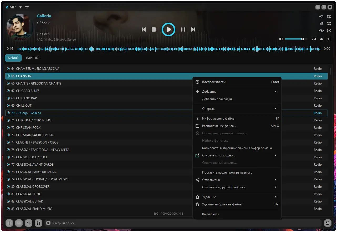 AIMP — это универсальный аудиоплеер, разработанный для воспроизведения музыки в самых разных форматах без необходимости установки дополнительных кодеков. Он объединяет в себе функции проигрывателя, редактора метаданных, конвертера, захвата аудио с дисков и потоковой передачи через интернет. Программа поддерживает широкий спектр аудиофайлов, включая редкие и высококачественные форматы, что делает её незаменимой для пользователей, ценящих чистое звучание и организованную фонотеку.