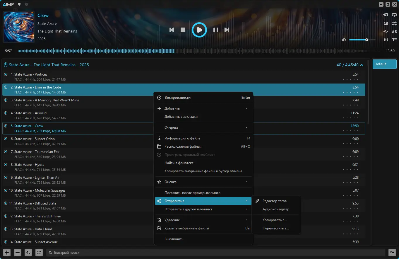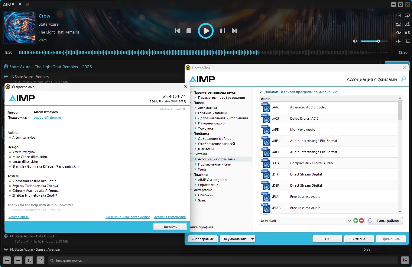 AIMP представляет собой комплексное решение для работы с аудио на компьютере. Он сочетает в себе функции проигрывателя, конвертера, редактора метаданных, захвата аудио с дисков и управления медиатекой. Программа поддерживает широкий спектр аудиоформатов, включая редкие и высококачественные, такие как FLAC, DSD, WavPack и Opus. Благодаря 32-битной обработке звука и поддержке режимов вывода DirectSound, ASIO и WASAPI Exclusive, AIMP обеспечивает максимальную точность и чистоту звучания.