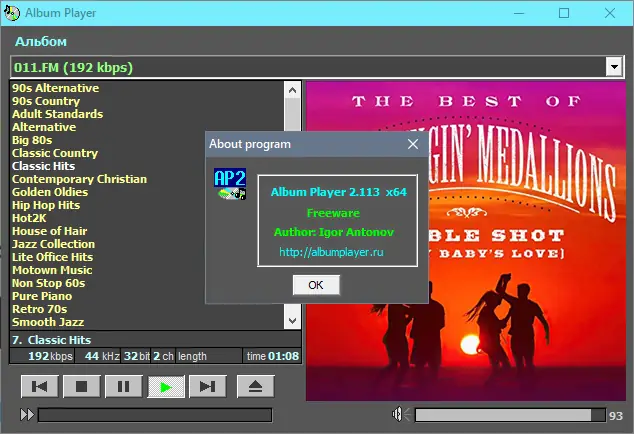 Album Player — это высокоточный аудиоплеер, предназначенный для прослушивания музыкальных альбомов в различных цифровых форматах. Программа поддерживает прямой вывод звука без промежуточного микширования, обеспечивая максимально чистое воспроизведение, близкое к оригиналу. Подходит как для повседневного использования, так и для аудиофилов, ценящих качество звучания.