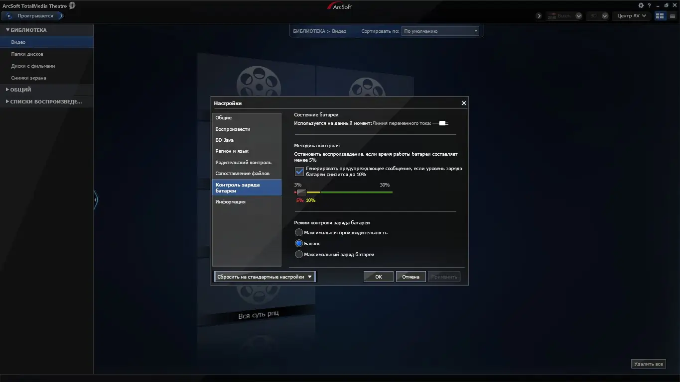 Работа с Arcsoft TotalMedia Theatre