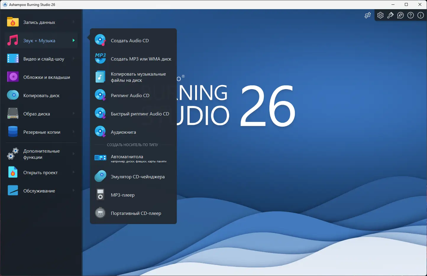 Ashampoo Burning Studio — это мощное и интуитивное решение для записи, копирования и резервного копирования данных на CD, DVD и Blu-ray. Программа поддерживает широкий спектр мультимедийных задач, включая создание аудио- и видеодисков, слайд-шоу, риппинг музыки и работу с образами дисков. Современный интерфейс, высокая совместимость и продвинутые функции делают её незаменимым инструментом для сохранения и обработки цифрового контента.
