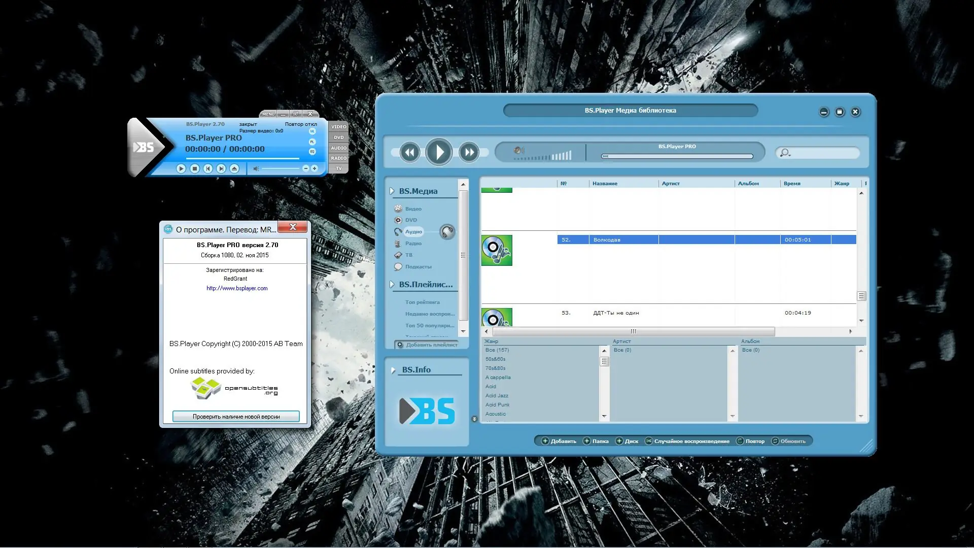 BS.Player — это универсальный видеоплеер, разработанный для комфортного воспроизведения мультимедиа на компьютере под управлением Windows. Программа изначально создавалась с акцентом на поддержку формата DivX, но со временем расширила совместимость до большинства современных видео- и аудиокодеков. Она легко справляется с высоким разрешением, включая HD и Full HD, и обеспечивает плавное воспроизведение даже на слабых конфигурациях. Интерфейс отличается гибкостью — можно изменять размер окна, применять скины и настраивать поведение плеера под личные предпочтения. Поддержка Drag-and-drop упрощает добавление файлов, а работа с RAR-архивами позволяет открывать видео напрямую без предварительной распаковки.