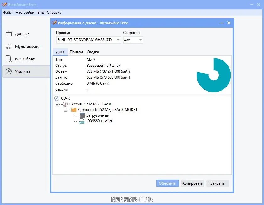 - Создание и запись образов ISO и других форматов, что удобно для архивирования или дублирования дисков.