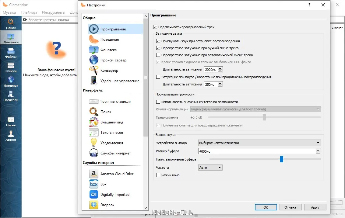 - Поддержка воспроизведения музыки с локальных дисков и облачных хранилищ, включая Google Drive и Dropbox.