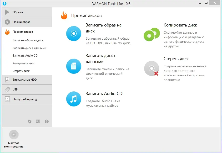 DAEMON Tools Lite — это легковесное приложение для создания виртуальных CD/DVD/Blu-ray приводов и монтирования образов дисков без необходимости использования физических носителей. Программа поддерживает широкий спектр форматов, включая ISO, MDS/MDF, MDX, CCD, B5T, NRG и многие другие, обеспечивая удобный доступ к содержимому без износа оптических устройств. Она идеально подходит для запуска программ, игр и мультимедиа с образов, а также для резервного копирования дисков.