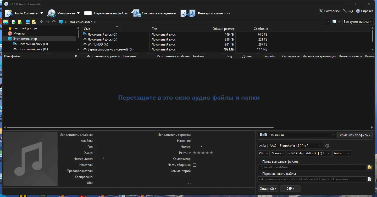 Программа представляет собой мощный инструмент для работы с аудио, сочетающий в себе функции конвертера, копировщика CD, редактора тегов и менеджера метаданных. Она позволяет извлекать аудиодорожки с физических дисков с высокой точностью и минимальными ошибками, используя продвинутые алгоритмы чтения. Поддержка внешних и внутренних кодеков, включая LAME MP3 Encoder, Fraunhofer, Windows Media Audio и Apple Lossless, даёт возможность настраивать качество выходного файла под любые задачи. Работа с DSD, DXD и многоканальными форматами делает её подходящей как для любителей, так и для аудиофилов.