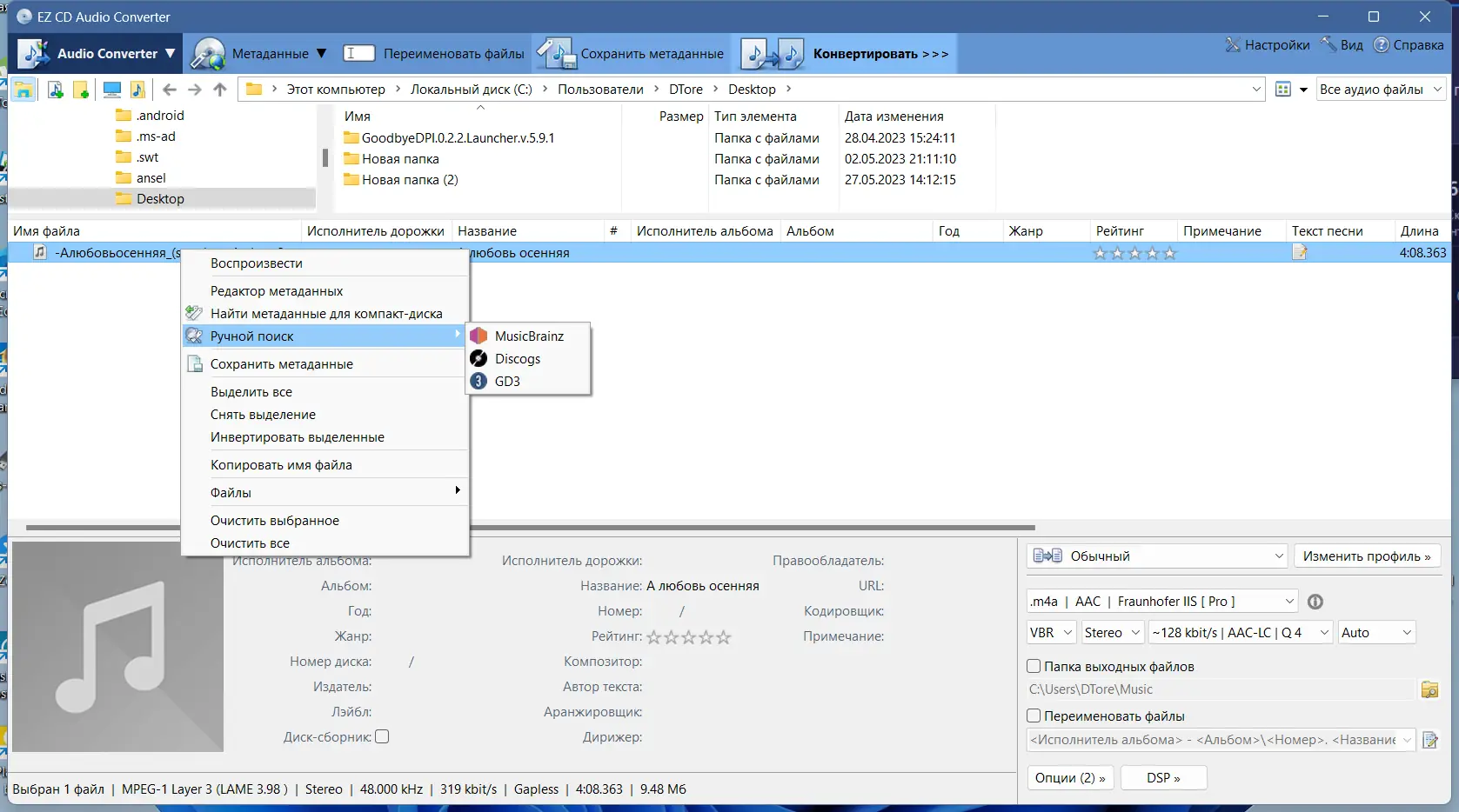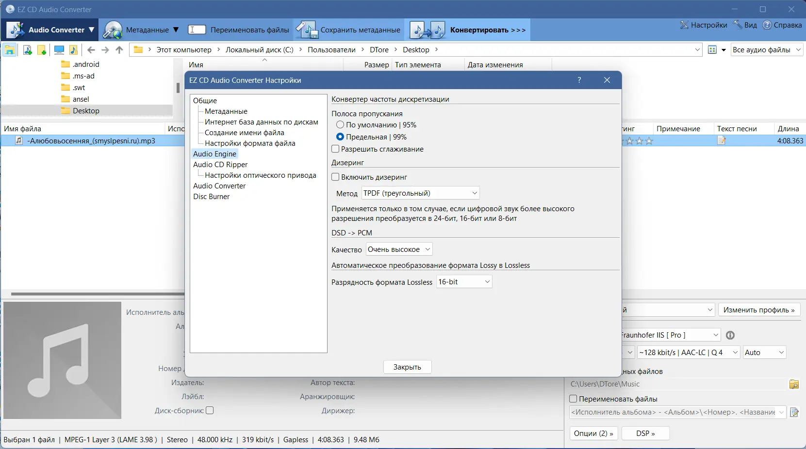 Работа с EZ CD Audio Converter