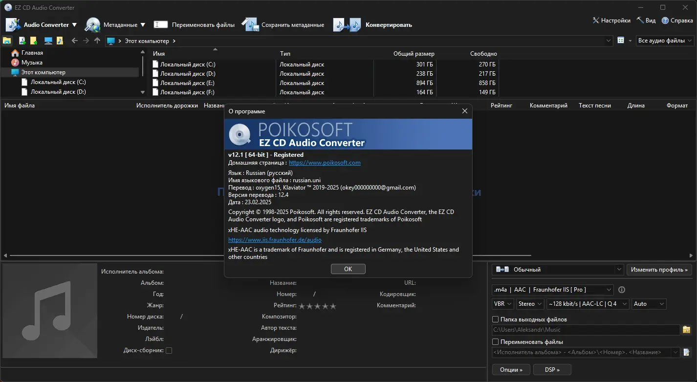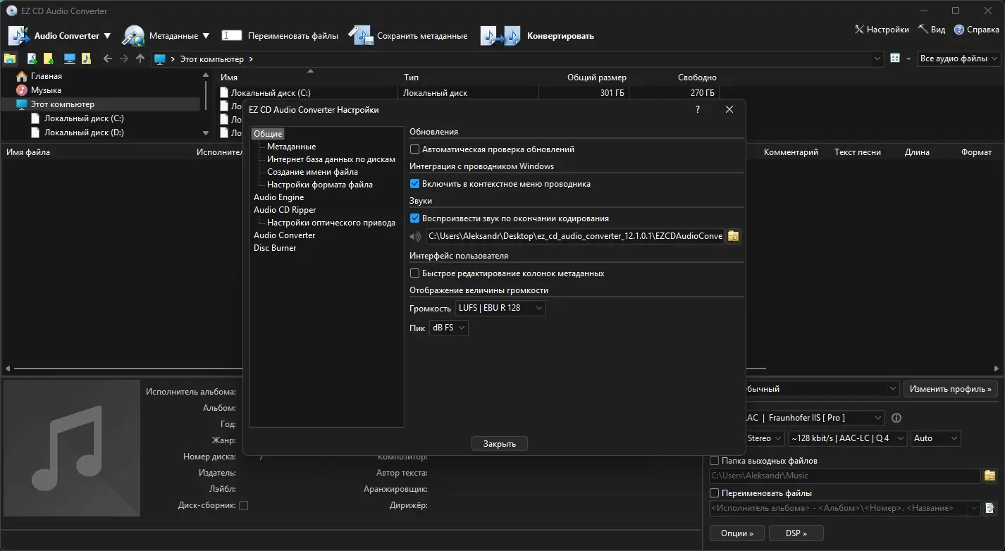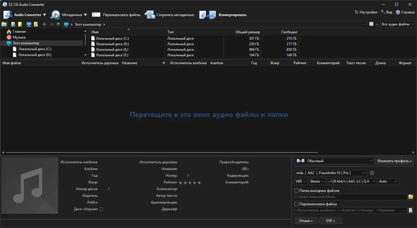 EZ CD Audio Converter сочетает в себе мощные функции конвертации, риппинга и редактирования аудио в едином интерфейсе. Программа способна оцифровывать аудио-CD с высокой точностью, извлекая данные даже с царапаных или повреждённых дисков благодаря продвинутым алгоритмам чтения. Поддержка множества форматов включает как популярные (MP3, WAV, FLAC, AAC), так и редкие и профессиональные (DSD, ALAC, Monkey’s Audio, TrueHD). Благодаря встроенной поддержке кодеков и аппаратному ускорению, конвертация происходит быстро и без потерь качества.