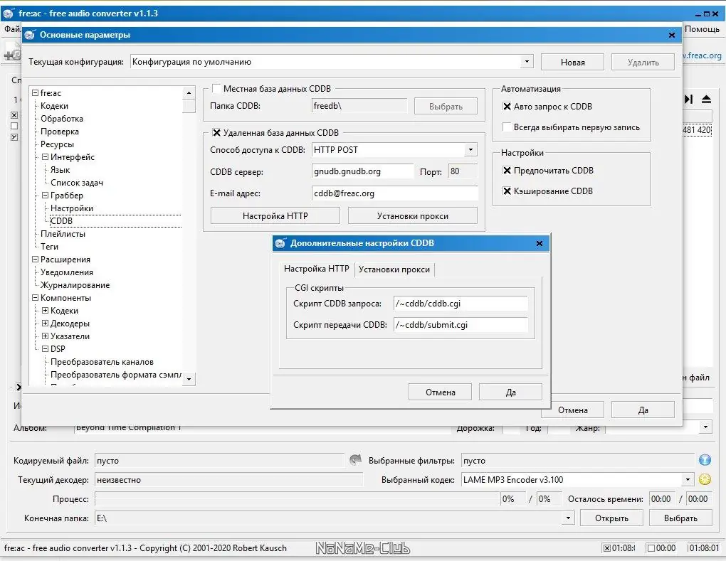 - Автоматическое получение информации о треках через базу freedb и GNUdb