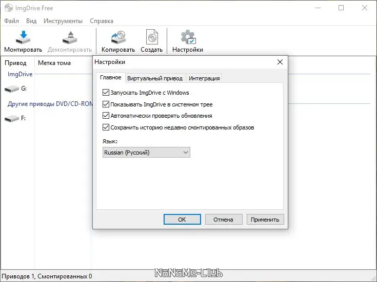 - Отсутствие встроенных инструментов для создания или редактирования образов — программа ориентирована только на монтирование.