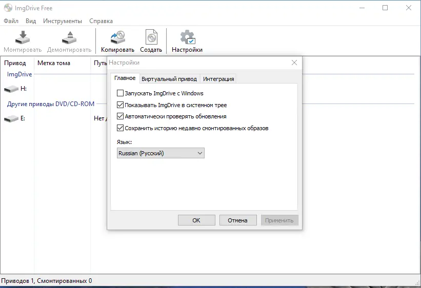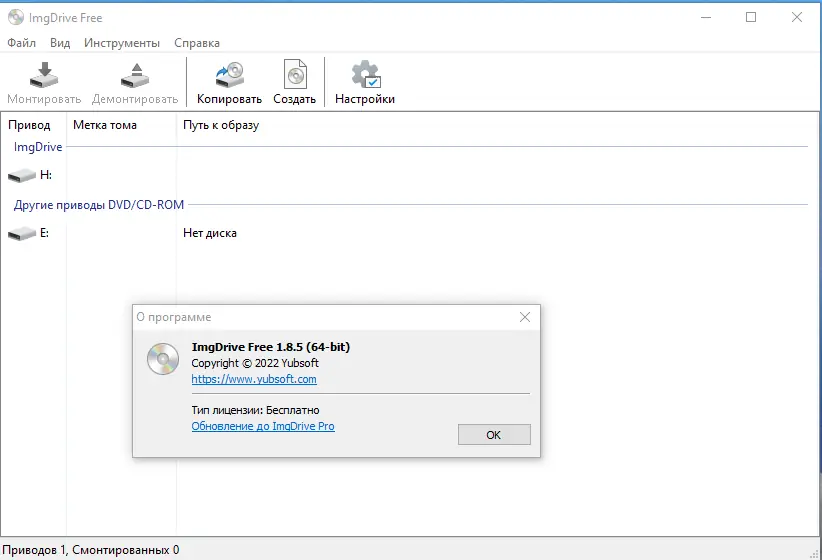 ImgDrive не требует перезагрузки системы после установки и обеспечивает стабильную работу с несколькими виртуальными приводами одновременно.