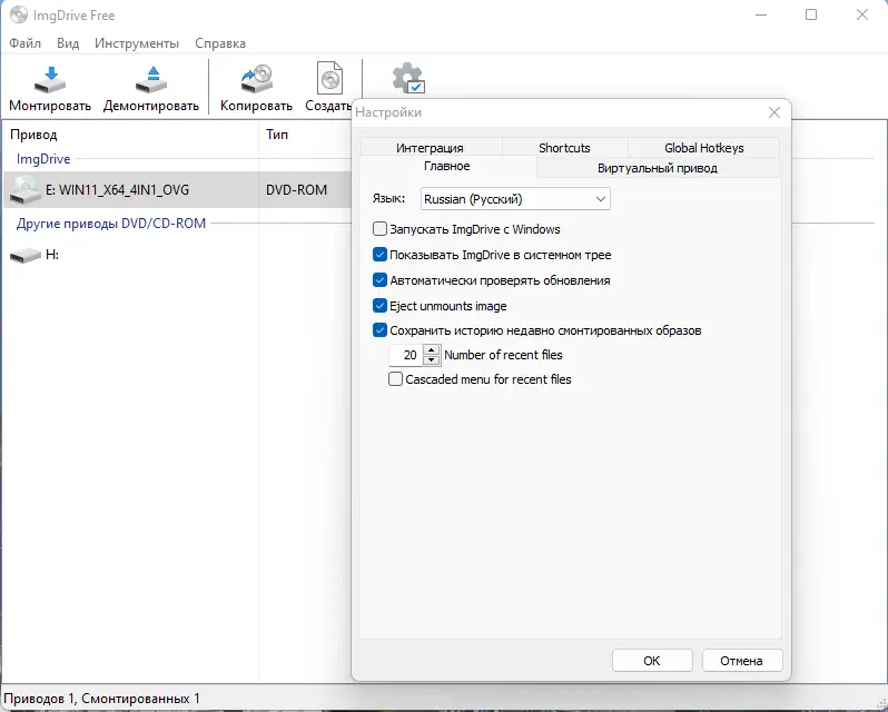 ImgDrive — это легковесный и эффективный эмулятор виртуальных дисков, предназначенный для быстрого монтирования образов различных форматов без необходимости использования физических носителей. Программа поддерживает широкий спектр расширений, включая ISO, NRG, MDS/MDF, CCD, CUE и сжатые ISZ-файлы. Интеграция в контекстное меню ОС и работа из системного трея делают взаимодействие с приложением максимально удобным и ненавязчивым.