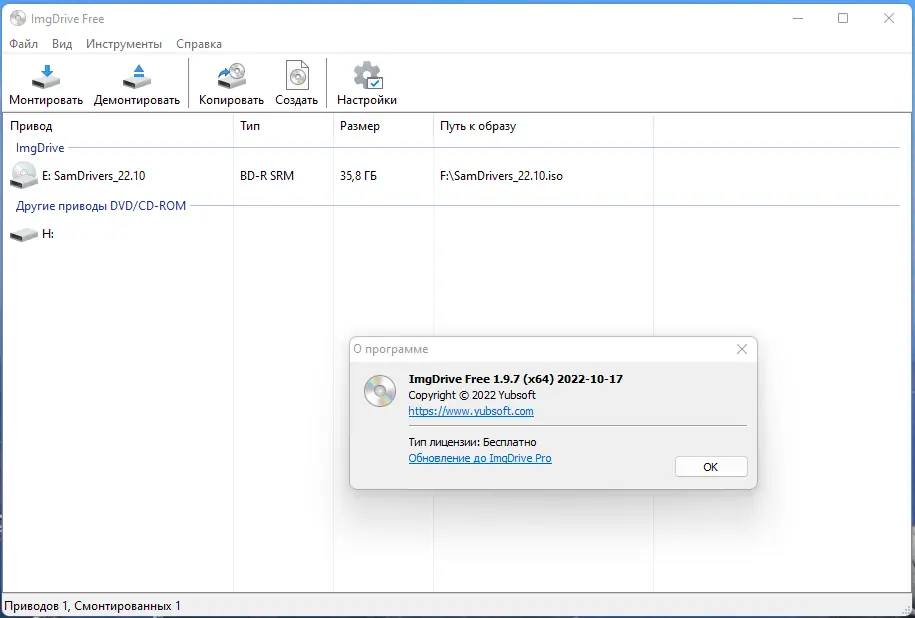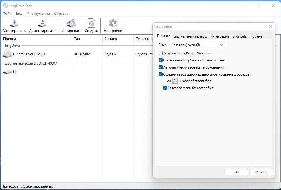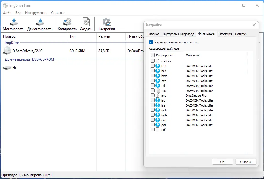 ImgDrive — это легковесный и интуитивно понятный эмулятор виртуальных дисков, предназначенный для монтирования образов различных форматов без необходимости использования физических носителей. Программа поддерживает широкий спектр форматов, включая ISO, CUE, NRG, MDS/MDF, CCD и ISZ, а также позволяет работать с аудиообразами APE, FLAC, WAV и другими. Благодаря интеграции в контекстное меню и работе из системного трея, использование становится максимально удобным.