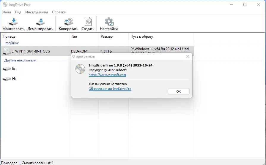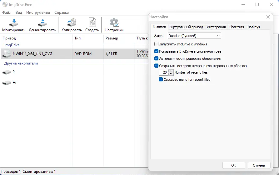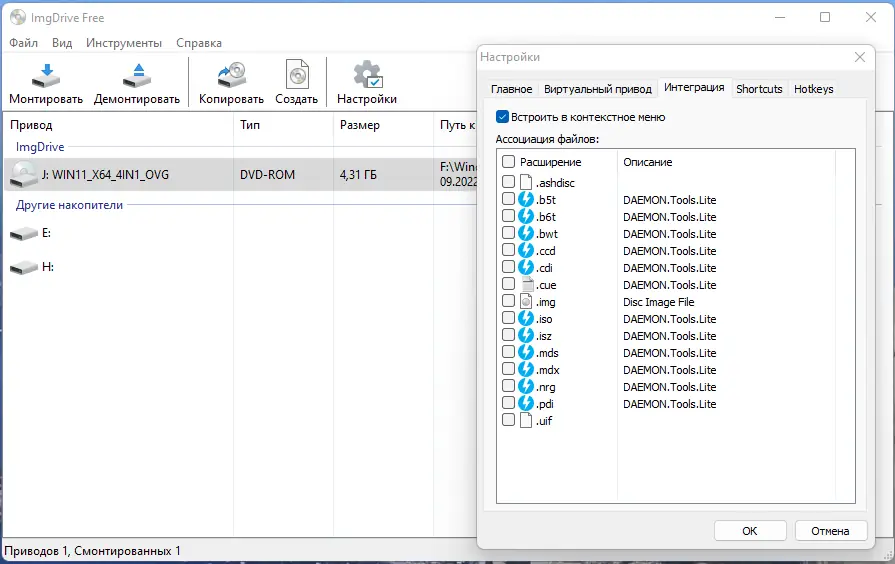 ImgDrive — это удобный эмулятор виртуальных дисков, обеспечивающий быстрое монтирование образов различных форматов без необходимости использования физических носителей. Программа поддерживает широкий спектр форматов, включая ISO, CUE, NRG, MDS/MDF, CCD, ISZ, а также способна работать с аудиообразами APE, FLAC, WAV и другими. Лёгкая в использовании утилита интегрируется в контекстное меню Windows и функционирует через системный трей.