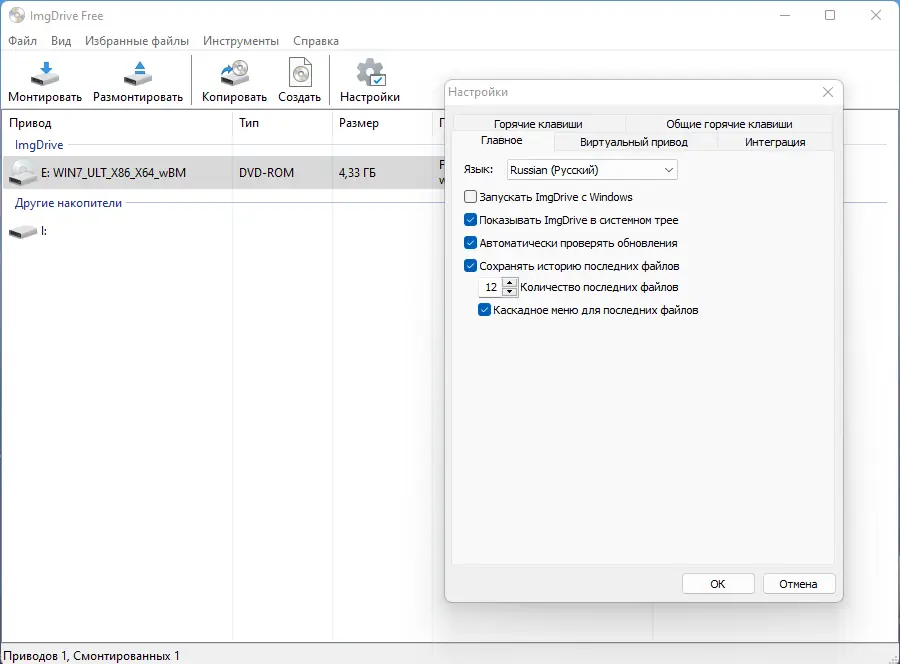 ImgDrive представляет собой легковесное приложение для монтирования образов дисков, разработанное с акцентом на простоту и стабильность. Оно не требует перезагрузки системы после установки и сразу готово к использованию, отображаясь в системном трее. Поддержка широкого спектра форматов делает её универсальным решением для работы с резервными копиями дисков, аудиоархивами и виртуальными носителями.