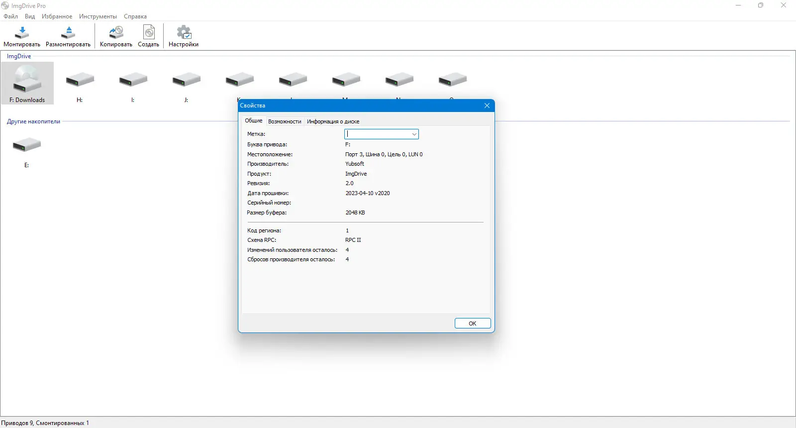 - Поддержка до четырёх виртуальных приводов одновременно для параллельной работы с несколькими образами.