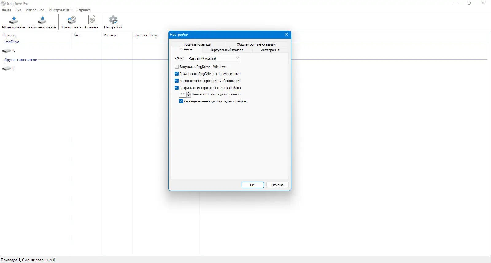 ImgDrive не требует перезагрузки системы после установки и начинает работать сразу после интеграции в ОС.