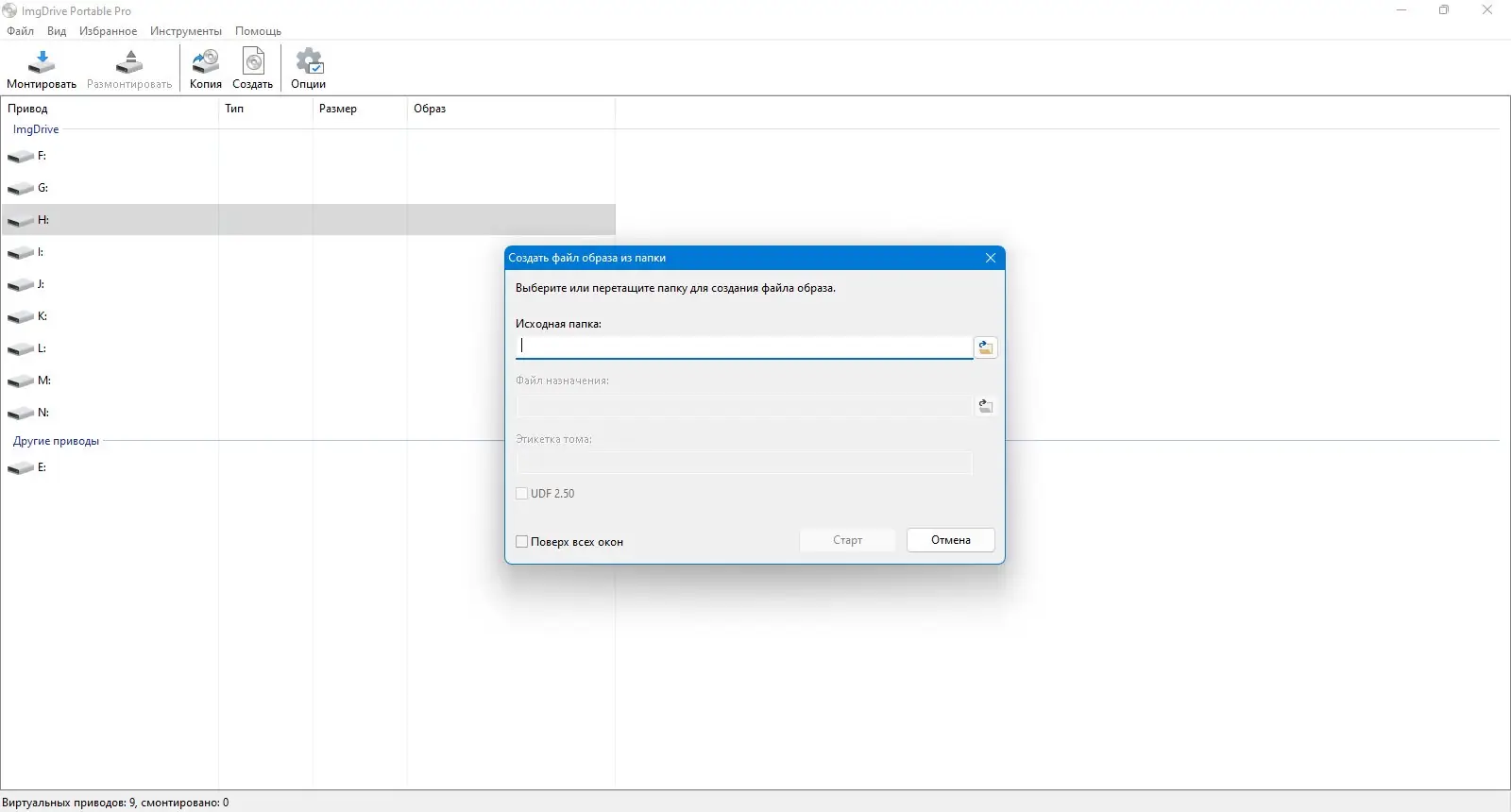 ImgDrive сочетает в себе высокую производительность, стабильность и минимальное потребление системных ресурсов. Программа поддерживает как 32-, так и 64-битные версии Windows, начиная с Windows 7 и заканчивая Windows 11, что делает её универсальным инструментом для широкого круга пользователей. Особенно ценной является возможность монтировать папку как образ DVD или Blu-ray, что удобно при тестировании сборок или создании виртуальных дисков. Портативная версия позволяет использовать программу на любом компьютере без установки, а встроенный механизм установки драйвера работает корректно даже на системах с повышенной безопасностью.