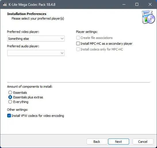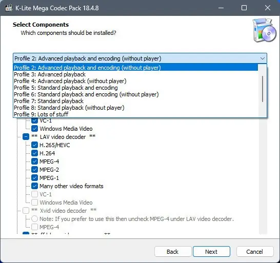 Работа с K-Lite Codec Pack