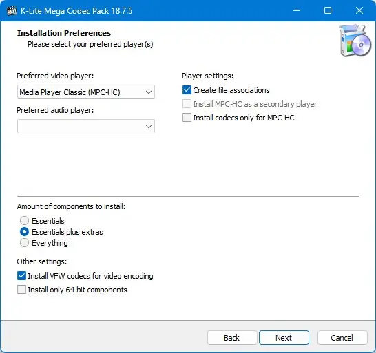 Работа с K-Lite Codec Pack