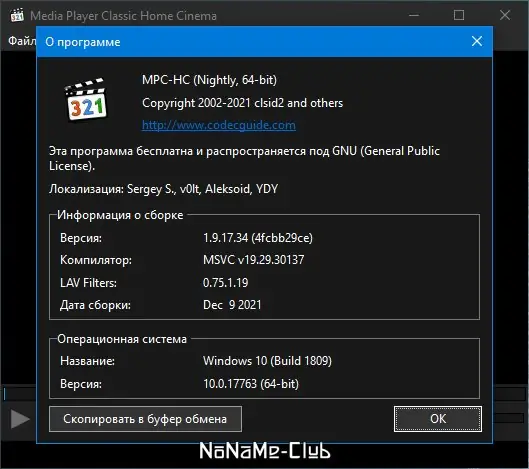 - Интегрирован проигрыватель Media Player Classic, оптимизированный для работы с кодеками.