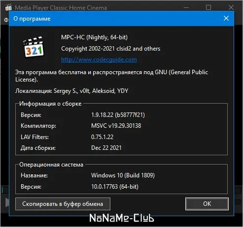 - Поставляется с проигрывателем Media Player Classic Home Cinema