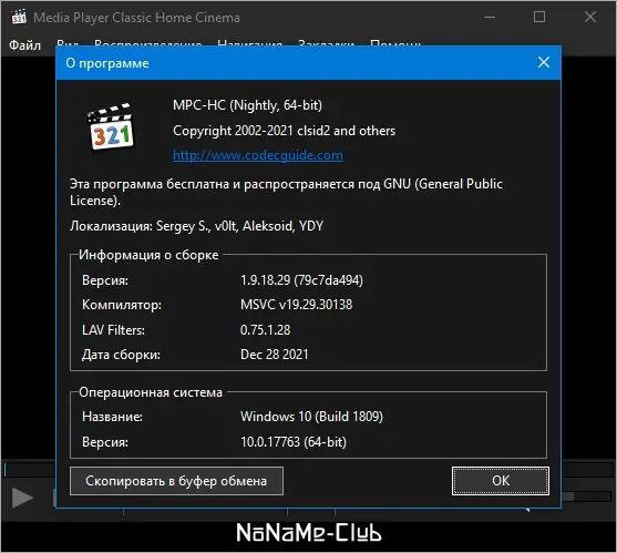 - В комплекте присутствует медиаплеер MPC-HC, оптимизированный для работы с установленными кодеками.