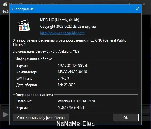 - В состав входит проигрыватель Media Player Classic Home Cinema, адаптированный для максимальной совместимости с установленными фильтрами.