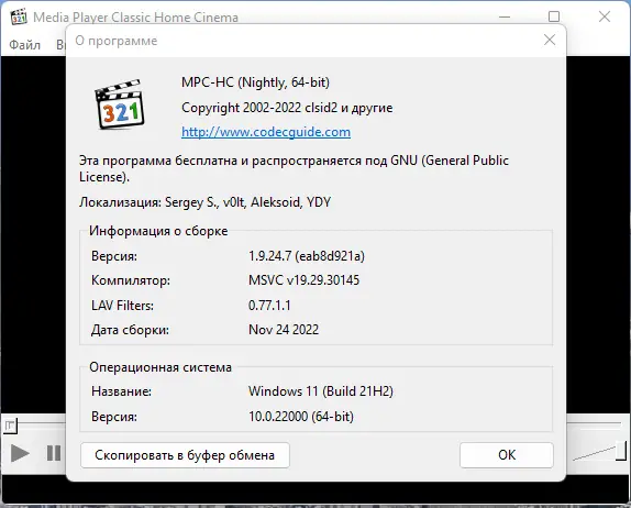 - Наличие встроенного медиаплеера Media Player Classic Home Cinema.